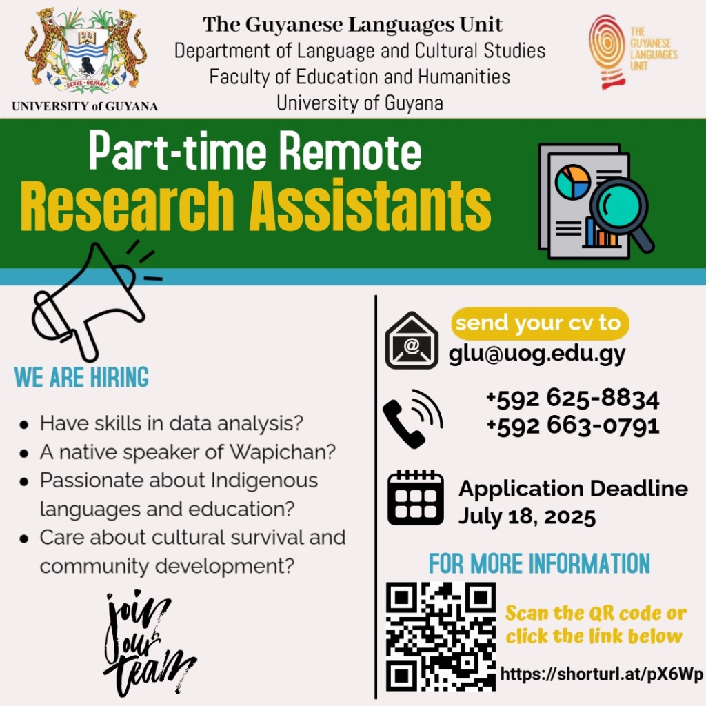 The deadline for the Part-time Remote Research Assistant positions has been extended to Friday, 25 July 2025 (please ignore date in original add below).
